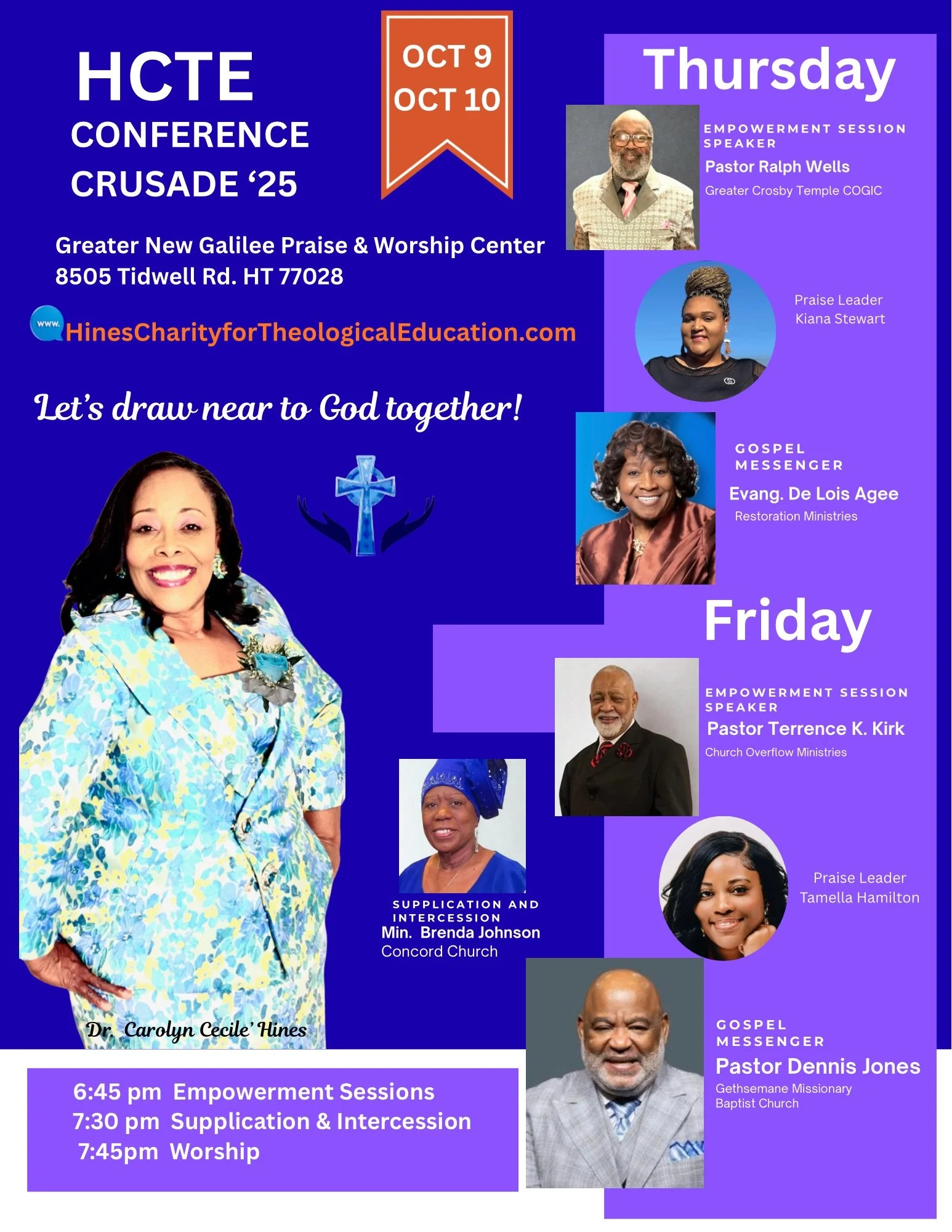 HCTE Conference Crusade ‘25 provided two nights of prayer, praise, and preaching with worship leader, Pastor Chad Stevenson. Minister Brenda Johnson led us in fervent prayer as the Holy Ghost gave utterances. Pastor Terence Kirk and Pastor Ralph Wells’ shared biblical revelations that stirred our hearts and lifted our thoughts. Sis. Kiana Stewart and Sis. Tamella Hamilton led all in moments of praise that glorified God and united us in praise. Pastor Dennis Jones and Evangelist Delois Agee preached the pure Word of God that compelled unbelievers and increased faith in service for Christ.